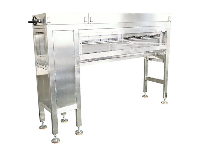 Introduction: The QD Chocolate Bar Cutter is a machine for producing chocolate bars and small chocolate pieces. It is equipped with a chocolate bar extruder and a high-speed cutter, and must be used in conjunction with a cooling tunnel. The cutter is driven by a high-speed motor and precisely controlled by a PLC. It can cut the extruded chocolate ribbon onto the belt to a fixed length and at a fixed time, producing chocolate pieces of various shapes and sizes.