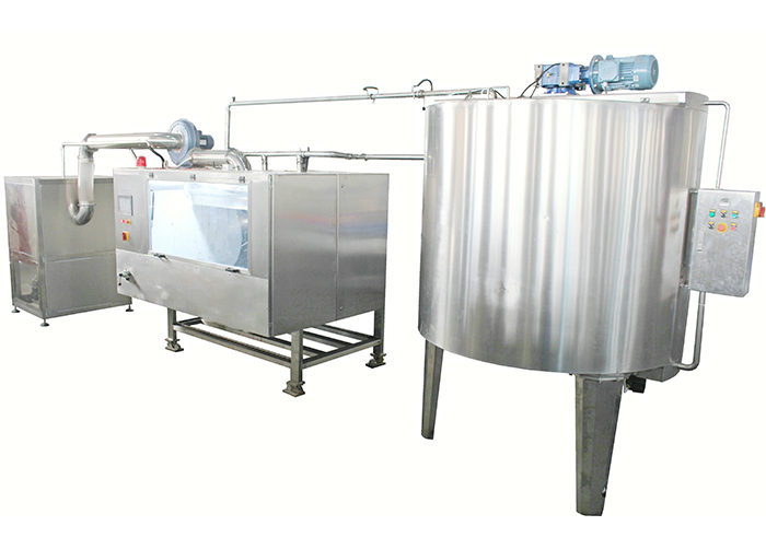 Introduction: The MDP belt coating machine is designed for chocolate coating, rounding, and polishing the surfaces of nuts, Maltesers, crispy rice, and dried fruit. It utilizes a food-grade conveyor belt rolling polishing principle. It comes standard with a fully automatic, high-efficiency atomizing nozzle, capable of switching between standard showering and atomizing spraying modes. It also comes standard with PLC control, capable of storing a variety of recipes and processes. It also comes standard with cold and hot air systems. An optional automatic weighing module provides high-precision weighing and metering. An optional large-capacity chocolate holding tank automatically controls the chocolate flow rate. It offers high throughput, easy cleaning, a high degree of automation, and ease of use.
