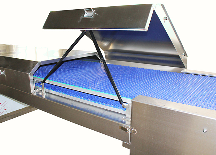 Introduction: The MLD cooling tunnel is a production facility used for chocolate cooling. The MLD cooling tunnel utilizes a high-quality sealing design to ensure stable temperature within the cooling tunnel and reduce energy loss. A unique cold air deflector design ensures efficient cooling. The conveniently accessible hood design simplifies cleaning and maintenance.
