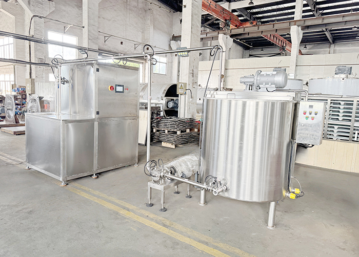 Introduction: The MTW continuous tempering machine is essential equipment for the large-scale production of pure cocoa butter chocolate. Utilizing a unique multi-stage tempering process, the MTW continuous tempering machine maintains the chocolate temperature strictly according to the tempering curve, resulting in perfect crystallization of pure cocoa butter chocolate. This unique design ensures continuous, uninterrupted production, providing a continuous supply of high-quality tempered chocolate paste to chocolate production lines such as depositing and coating lines.